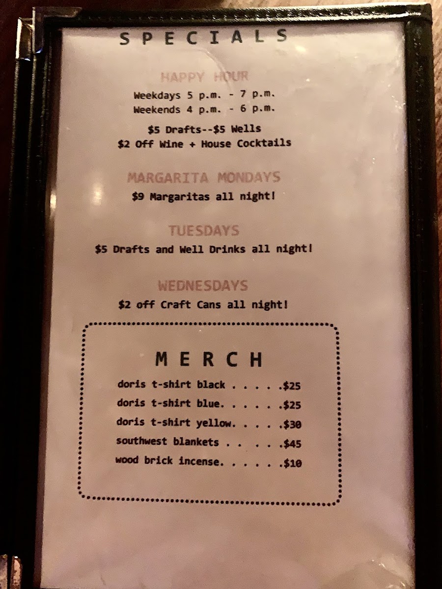 The drink menu at Doris is nothing short of delightful. Indulge in their Happy Hour with a variety of draft options and well drinks, or swing by on Margarita Mondays to savor margaritas that flow all night. For those looking for non-alcoholic options, the bar features refreshing alternatives like Athletic Brewing Non-Alcoholic Beer and Lagunitas Hop Refresher, ensuring everyone finds something to quench their thirst.